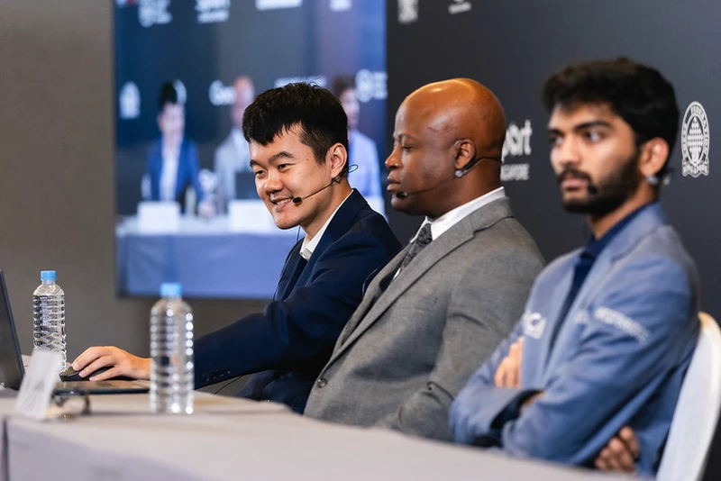Gukesh then selected to play a vital plan with 9…dxc4 and 10…Nh5, asking the London bishop some vital questions. Gukesh revealed within the press convention that he was involved about 11. Ne4, which contained many deep and vital strains. As an alternative, Ding selected the extra stable 11. Bg5, noting within the press convention that he thought he had extra to play for after 11…Be7, a transfer he didn’t give due consideration.